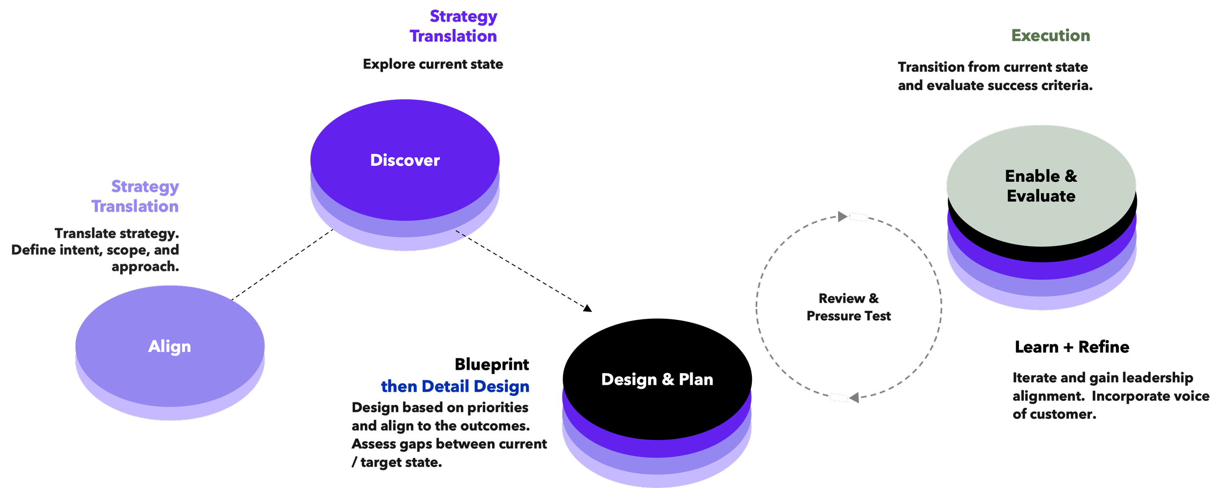 We conduct Discovery Assessments to evaluate structures, workflows, and systems, uncovering performance barriers and opportunities. The insights gained inform a strategic roadmap that aligns operations, enhances efficiency, and drives organizational impact.